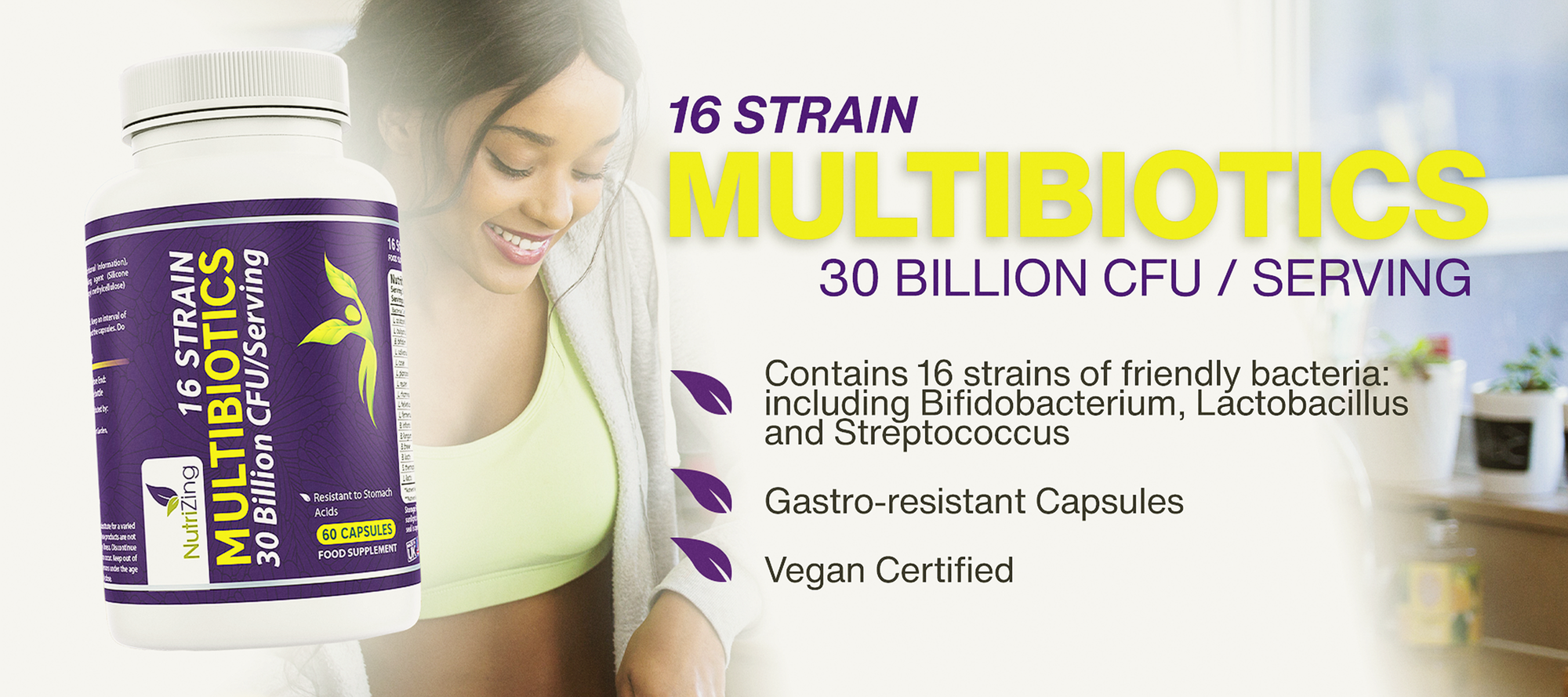 Advanced Probiotics | The Live Cultures for Women| 2.5 Billion CFUs per serving - 60 Capsules | Vegan & No Dairy | Made in UK by NutriZing