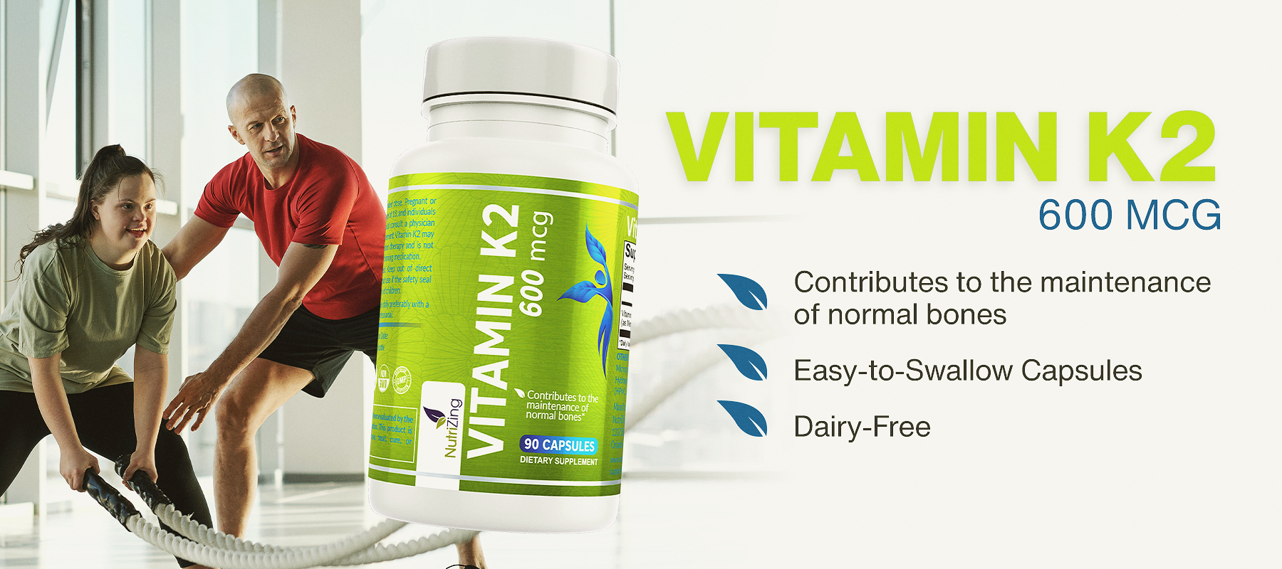 Vegan Vitamin K2 MK-7 600mcg | 90 Capsules | Supports Maintenance of Normal Bones | Made in UK by NutriZing
